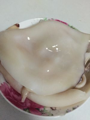 鱿鱼买回来后先清理干净,祛除鱿鱼表面的黑色膜,眼镜,牙齿,内脏。看洗干净的鱿鱼白白净净啦