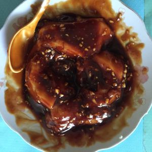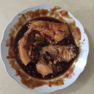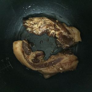 几分钟后,电饭锅会自动跳到保温状态,拿块湿布盖住出气口,闷几分钟,然后打开把肉翻动至另外一面,按下键,直到再次跳到保温。此时可以适当加点流质的蜂蜜,均匀的抹在肉上面。也可以不加。跳到保温后稍微翻动一下,尽量不要焦了,继续闷几分钟。