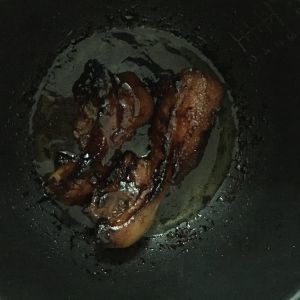 把肉铺上去,按下煮饭按键。腌制出水的汁可以倒掉。