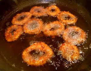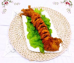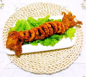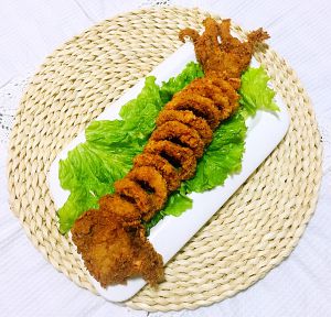 将鱿鱼圈放入锅中炸亲们一定要注意安全