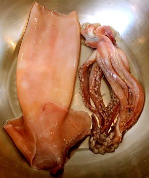 在超市买了一条鱿鱼,我家宝宝要吃炸鱿鱼圈