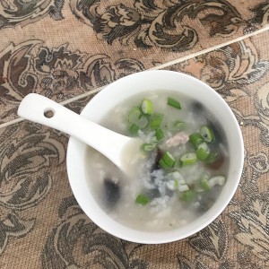 淘米后放入锅中,中火,米粒稍变丰满、加入肉丝、皮蛋、盐、花椒粉、出锅后、撒上葱花、香菜即可、