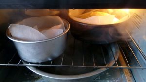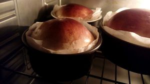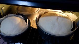 放一盆烧好的热水进烤箱,模仿面包店里,发酵箱的温度湿度对面团进行二次发酵,(该步骤烤箱不需要通电,烤箱只起到密闭容器的作用)