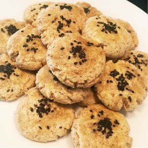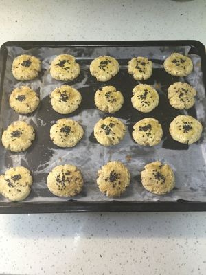 成品,以前做的核桃酥没有裂纹,这回估计是放了玉米淀粉的事,出现了好看的裂纹