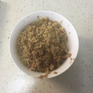 把核桃仁在锅里翻炒二分钟左右,闻见香味即可,然后用搅拌器或研磨器打碎