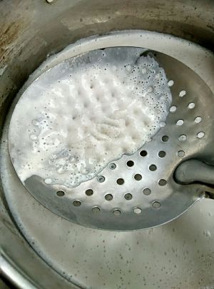 关火放置5分钟把表面一层皮舀出