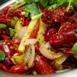 开火倒入油,先爆炒龙虾,全部变成亮红色,倒入姜蒜翻炒出香味,捞出,再放入豆瓣酱,干辣椒,花椒,青椒,小米辣,炒香,大概6分钟加入一碗水,再倒入龙虾一起用大火翻炒。再加入半碗水,加入盐,生抽。这时加入土豆,洋葱。熟了加入味精,鸡精。