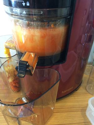 果汁配料:一个苹果一个橙子少量胡萝卜。刚刚好榨成两杯。
