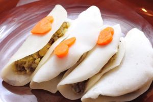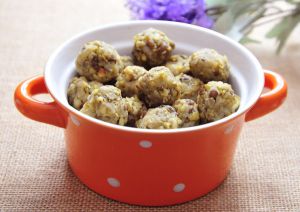 压碎,轻轻捏成小丸子,备用。(绿豆沙我是提前一天晚上做好的)