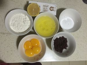 准备材料,蛋清蛋黄分离,蔓越莓干切碎。