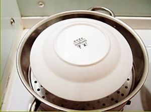 放入蒸锅,在蛋碗上反扣一个盘子(这是第二步)