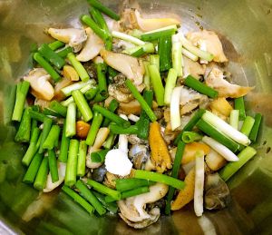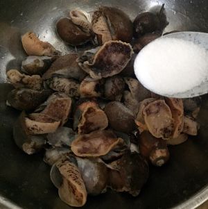 再次放入适量的盐搓揉,这回就比第一次少了好多的黏液,干净了许多噢要想吃到美味的假鲍鱼必须要把假鲍鱼按摩到位哦