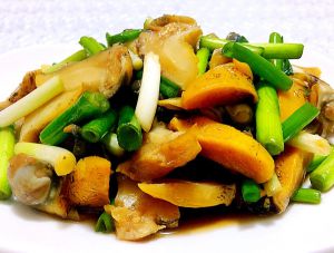等假鲍鱼凉至不烫手时将假鲍鱼去壳取肉放入盘中