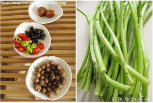 空心菜梗洗净,切成小段,美人椒切碎备用