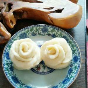 跟包饺子一样,分成小球,赶成片,但不能大溥,五个排起来,用筷子在中间压一下