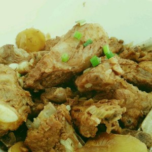 二十分钟过后,开盖,颜色和香味已经很诱人了,改大火猛炒,加微量醋提味。