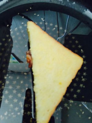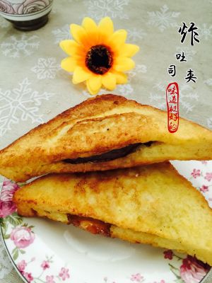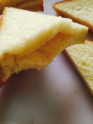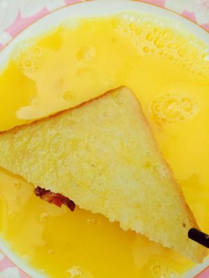 鸡蛋打散,吐司夹滚一层鸡蛋液