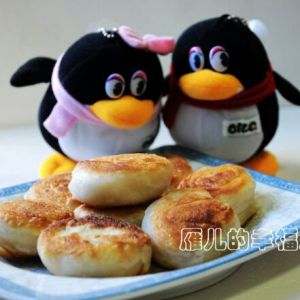 将醒好的剂子放在面板上,板子上刷层油,将面剂子擀开后慢慢拉长拉薄,放入萝卜丝卷起,包成饼,放入平锅中煎至两面金黄即可。