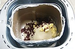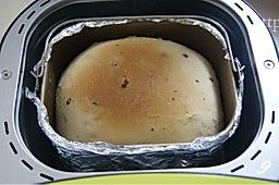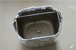 先在面包机的桶上包上锡纸。