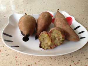 我没有用红心番薯,但普通的番薯烤出来已经很香很甜了。