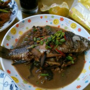 加入生抽,酱油适量,加水煮开后转小火慢炖,小红椒,葱花放入鱼上。盖上锅盖。