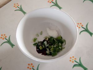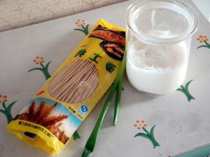 葱切葱花,少量老抽,1小勺猪油,适量盐入面碗备用。