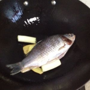 放入鲫鱼用油煎两面'各面煎数十秒即可