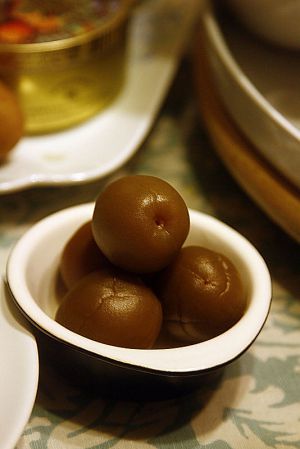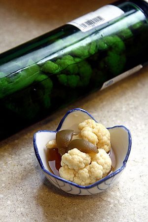 ★渍物★青梅2颗+花菜300克,味霖150ML+酱油2大勺+糖2大勺+姜片+蔬菜高汤450ML,浸泡密封过夜