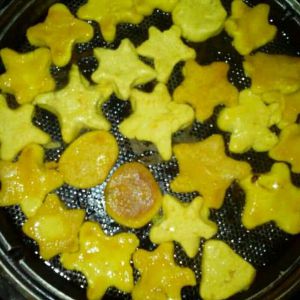 捏成小孩喜欢的样子。电饼裆刷点油煎熟就好。