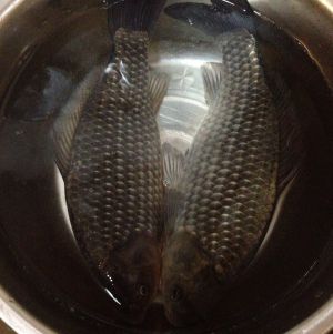 选用新鲜鲫鱼,收拾干净后用盐腌制15分钟