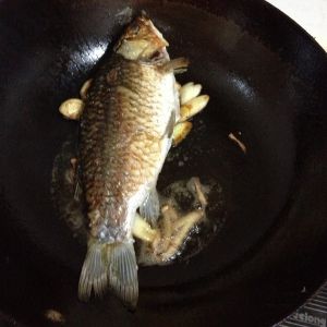 用油煎鱼两面金黄,不要用铲子不停翻,煎透了再翻。不断晃炒锅里的油防止鱼糊锅。