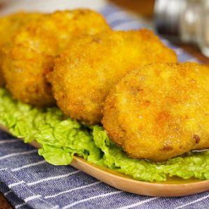 油锅开火烧热至175℃左右,放入可乐饼炸至金黄香酥,捞出沥油