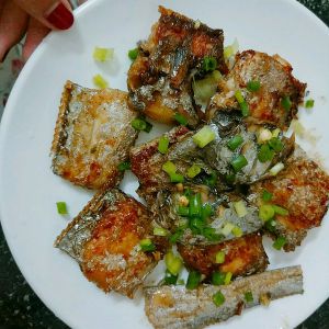 带鱼洗净切段 大火热油,放入带鱼小火煎至两面金黄