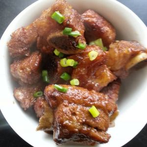 将排骨洗干净,焯水捞出,香葱洗净切末,姜蒜切片