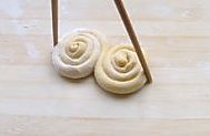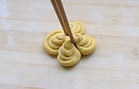 取一块面团,擀成0.5厘米的面饼,切1厘米的条,搓成长条