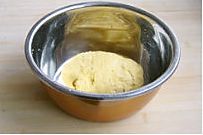 面粉加南瓜泥、酵母和成面团,盖上保鲜膜,发酵到原面团的两倍大