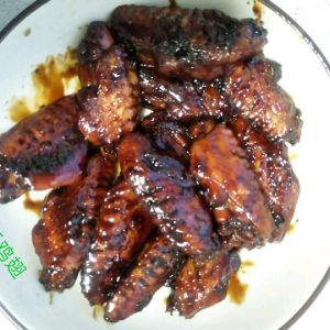 锅里放葱姜蒜炒香。把已经两面煎好的鸡翅放入。(鸡翅可用少许油煎,也可不用油煎。)我没有拍照。发咯料酒白糖盐可乐。中火煮上十来分钟分钟。等收汁!出锅。