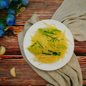 将土豆丝过滤清水2-3遍,滤去土豆中的淀粉。