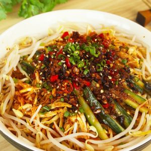 铺上豆芽,葱花,淋上2汤匙香油和一汤匙芝麻【记得淋汁后拍个照,超好看】
