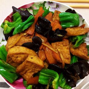 汤汁快收尽时,加入青椒,直至汤汁收尽