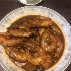 倒入热水 小火盖锅盖 收汁 使汤汁进入到虾肉里