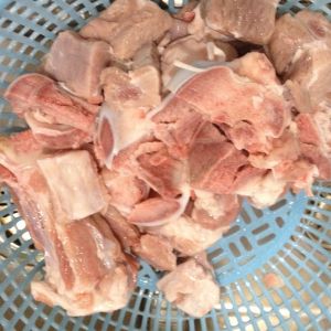排骨洗净,泡凉水两到三个小时,中间换几次水,主要是去血水,吧油腻洗干净,泡过洗干净以后就是这样白白的