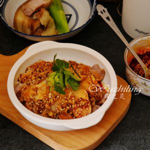 沾酱调料:熟白芝麻 辣椒油 香醋 香油 生抽 蒜瓣 花椒油 糖