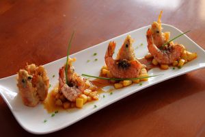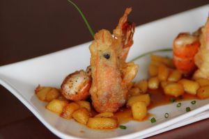 摆盘:焦糖苹果铺底,一头一身摆放,撒上少许葱花,OK