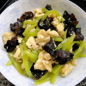 锅中下青椒木耳,加入盐,十三香,翻炒一分钟