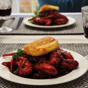 麻辣椒香的吮指小龙虾,配上刚出锅的蛋煎馒头片,哇!美丽的傍晚。浓浓的汤汁蘸馒头片也很棒呢!