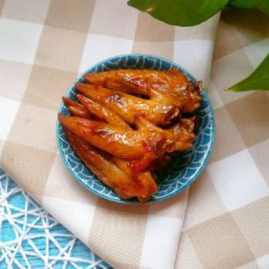 烤盘垫上油纸,摆上腌制好的鸡翅尖,送入预热好的烤箱中。