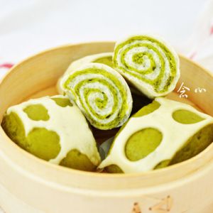 剩下的面团分别擀成薄片,叠加在一起卷起,之后分切