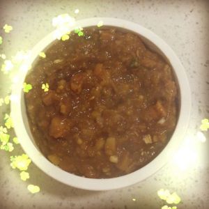 中火炖30分钟左右,开始收汤再炖10分钟,用炒勺翻煮,将土豆压挤成糊状!关火前放入全部蒜和香菜。