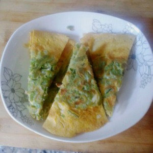 锅内倒入油烧至7成,倒入拌好的蛋煎成饼状(注:一定用中火煎,火大容易煎胡,小了饼不泡。)